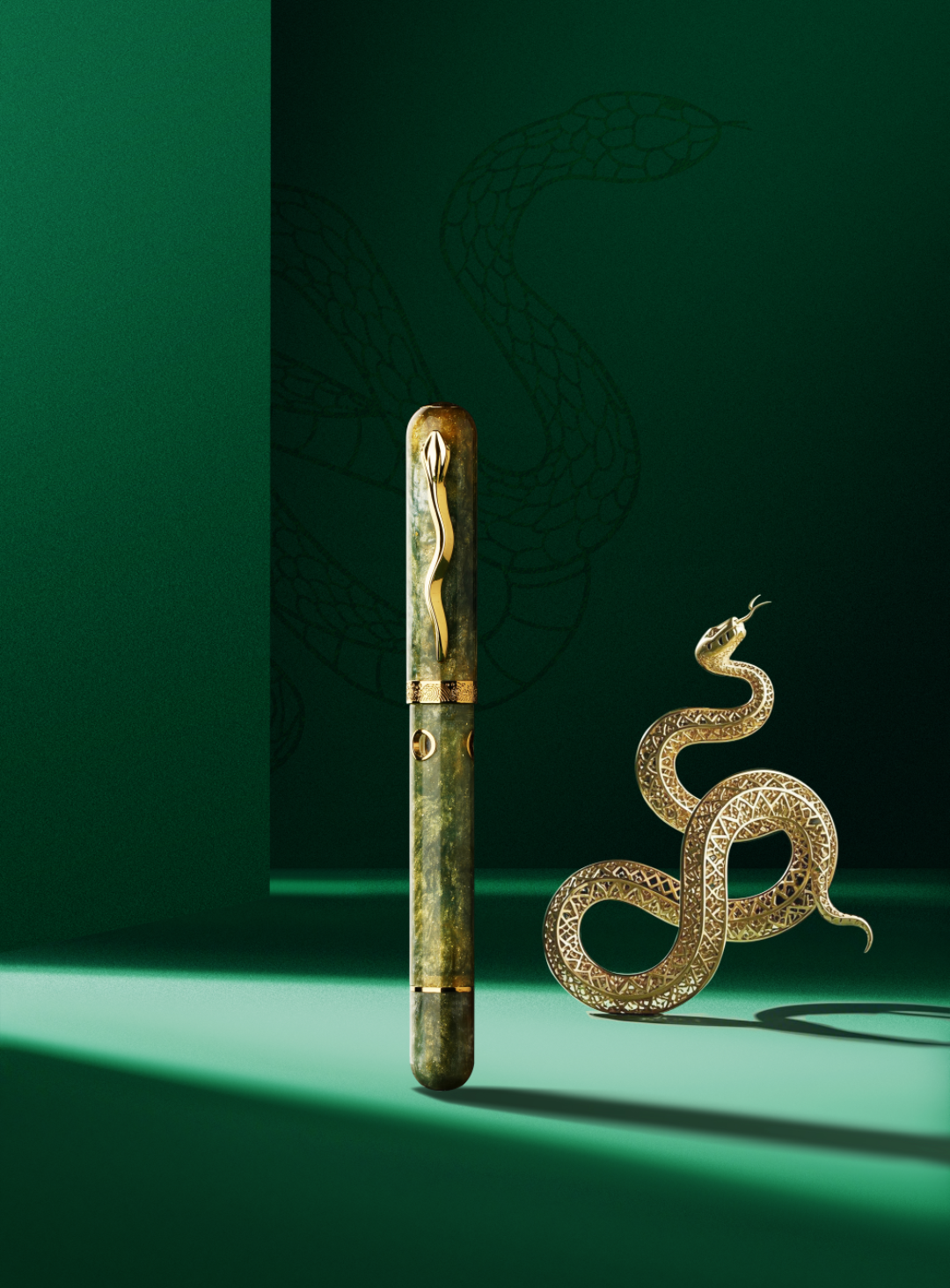 Introducing the Nahvalur Pen of the Year Snake Limited Edition Fountain Pen. This luxurious writing instrument features an exquisite snake design, exclusive to this limited edition collection. Crafted with the highest quality materials, this pen exudes sophistication and elegance. Elevate your writing experience with the Nahvalur Pen of the Year.