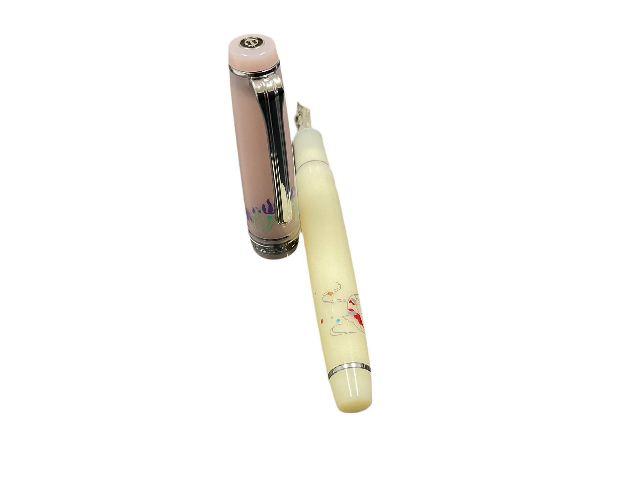 The Sailor Pro Gear Slim Princess Shirotae fountain pen from the Raden Collection draws inspiration from Japanese fairy tale princesses, blending exquisite craftsmanship with elegant design. Featuring a 14 kt nib, this pen offers a refined writing experience, while its slim profile ensures comfortable handling. The delicate raden inlays add a touch of traditional artistry, making it a sophisticated choice for collectors and enthusiasts alike.